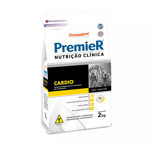 PremieR Nutrição Clínica Cães Cardio é um alimento auxiliar ao tratamento da doença / insuficiência cardíaca de cães. Além do tratamento prescrito pelo médico veterinário, uma alimentação especialmente formulada pode ser benéfica para pacientes com doença cardíaca. Este produto deve ser utilizado como auxiliar, portanto não substitui o tratamento convencional.