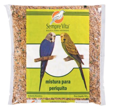 A Ração Sempre Vita Periquitos é um alimento completo de uso diário. A base de sementes e grãos, ricos em proteínas, fibras e vitaminas necessárias diariamente para seu pássaro ter vitalidade e longevidade. Contém 500g.