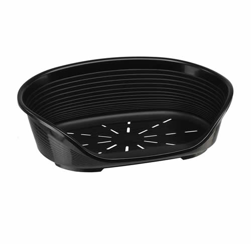Esta é uma confortável cama plástica para interno para cães e gatos. Dê uma olhada no projeto: com uma forma arredondada, as laterais são altas e confortáveis, a frente é baixa, com um útil descanso para o queixo para o seu animal de estimação. Possui pés de apoio antiderrapantes e aberturas especiais na base, para permitir a passagem de ar adequado.