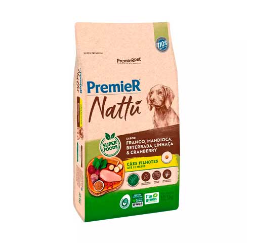 Farinha de vísceras de frango (25%), ovo desidratado - proveniente de galinhas livres de gaiolas (0,5%), glúten de milho – não transgênico, quirera de arroz, gordura de frango, óleo de peixe, complexo de vegetais - 10,0% (polpa de beterraba, farinha de mandioca branca, beterraba desidratada, semente de linhaça, extrato de arando (cranberry desidratada) e extrato de Marigold), antioxidantes BHA e BHT (0,012%), bentonita, ?-glucano, L-carnitina, cloreto de sódio, cloreto de potássio, extrato de yucca, hidrolisado de suíno e frango, levedura autolisada de cana-de-açúcar, mananoligossacarídeos (0,2%), metionina, taurina, vitamina A, vitamina B12, vitamina C, vitamina D3, vitamina E, vitamina K3, ácido fólico, ácido pantotênico, biotina, cloreto de colina, niacina, piridoxina, riboflavina, tiamina, cobre aminoácido quelato, ferro aminoácido quelato, iodeto de potássio, manganês aminoácido quelato, selênio metionina, sulfato de cobre, sulfato de ferro, sulfato de manganês, sulfato de zinco, zinco aminoácido quelato.