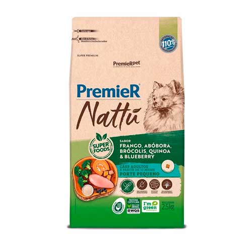 Ração Premier Nattu Cães Adultos Raças Pequenas Frango e Abobora 2,5kg