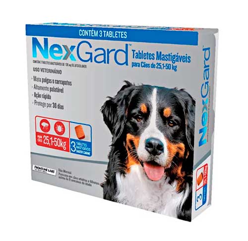 - Referência no tratamento contra pulgas e carrapatos, NexGard é comprovadamente seguro para cães de qualquer raça e conta com uma linha completa para atender diferentes portes e pesos.