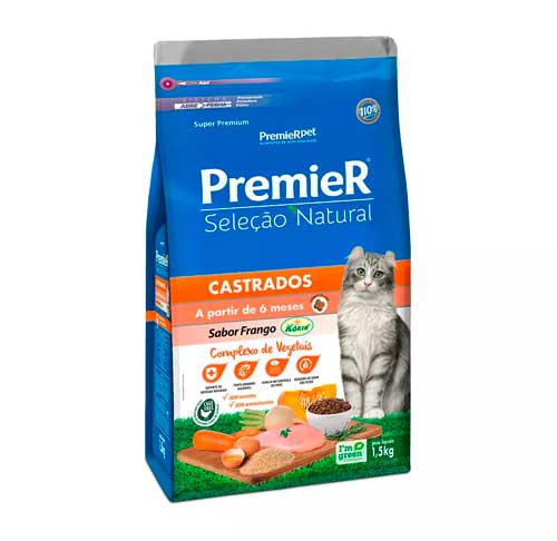 [Produtos] - Ração Premier Seleção Natural para Gatos Castrados Sabor Frango 1,5Kg