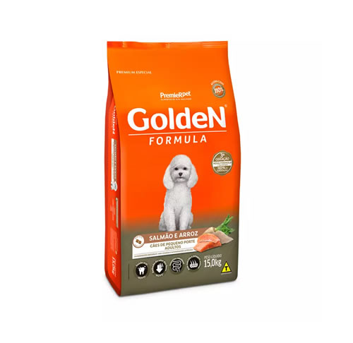 Ração Golden Fórmula Mini Bits para Cães Adultos de Pequeno Porte Sabor Salmão e Arroz - 15Kg