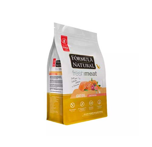 Carnes selecionas – (Carne de Salmão -mín. 10%, carne mecanicamente separada de frango, fígado de frango), farinha de vísceras de aves, farinha e fécula de mandioca, farinha de ervilha, amido de batata, óleo de vísceras de aves, óleo de salmão, palatabilizante de vísceras de suíno e frango, fibra de cana de açúcar, fibra de goiaba, frutas e vegetais desidratadas (abóbora - 0,5%, manga, maçã, cenoura, tomate), polpa de beterraba, semente de linhaça, cloreto de sódio, farinha de algas Schizochytrium sp., prebióticos (parede celular de levedura, fruto-oligossacarídeos e inulina), extrato de yucca (0,04%), vitaminas (A, D3, E, K3, C, B1, B2, B6, B12, biotina, pantotenato de cálcio, ácido fólico, niacina, cloreto de colina), minerais (sulfato de ferro, sulfato de cobre, iodato de cálcio, cloreto de potássio, proteinato de zinco, óxido de zinco, óxido de manganês, proteinato de selênio, selenito de sódio), lisina, metionina, taurina, acidificante, ácido propiônico, cúrcuma (0,01%), extratos de chá verde e alecrim, concentrado de tocoferóis (antioxidante natural) (0,01%)
