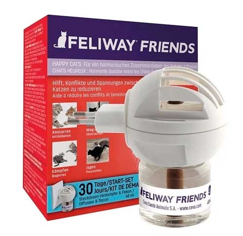 Feliway Friends Difusor Ceva é um análogo sintético com a mesma ação do odor materno felino, com a função de acalmar, transmitir segurança e aumentar a relação afetiva entre mães e filhotes. Feliway foi comprovado clinicamente que reduz as desavenças e outros conflitos entre gatos dentro da mesma casa (residências multi-cats).