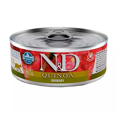 Carne de pato (mín. 60%), arenque, ovo, quinoa (mín. 5%), óleo de peixe, mirtilo vermelho (cranberry), camomila, aditivo prebiótico (FOS), sulfato de cálcio dihidratado, cloreto de colina, carbonato de cálcio, cloreto de potássio, vitaminas (A, D3, E), quelato zinco-metionina hidroxi analoga, quelato manganês-metionina hidroxi analoga, ferro aminoacido quelato, quelato cobre-metionina hidroxi analoga, DL-metionina, taurina, L-Carnitina.