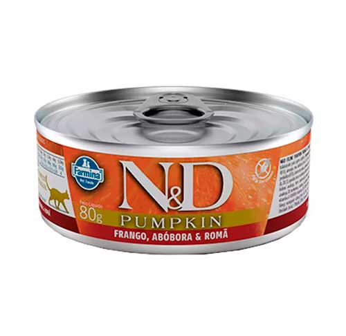 Carne de frango (mín. 45%), arenque, ovo, abóbora (mín. 5%), óleo de peixe, batata doce, romã, aditivo prebiótico (FOS), cloreto de colina, carbonato de cálcio, cloreto de potássio, vitaminas (A, D3, E), quelato zinco-metionina hidroxi analoga, quelato manganês-metionina hidroxi analoga, ferro aminoacido quelato, quelato cobre-metionina hidroxi analoga, DL-metionina, taurina, L-Carnitina.