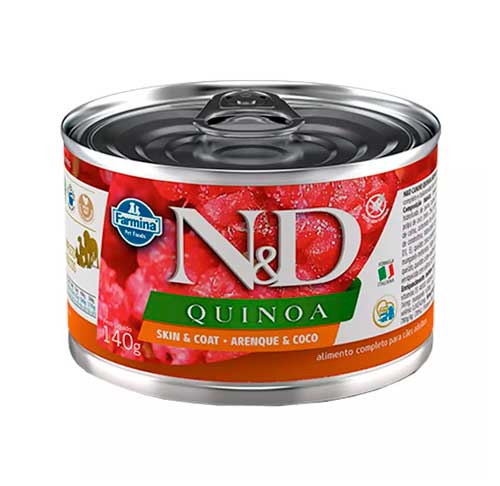 Arenque (mín. 55%), proteína hidrolisada de peixe, quinoa (mín. 5%), óleo de peixe, polpa de coco (mín. 2%), aditivo prebiótico (FOS), cloreto de colina, carbonato de cálcio, cloreto de potássio, sulfato de condroitina, hidrocloreto de glicosamina, vitaminas (A, D3, E), quelato zinco-metionina hidroxi analoga, quelato manganês-metionina hidroxi analoga, ferro aminoacido quelato, quelato cobre-metionina hidroxi analoga, levedura enriquecida com selênio, DL-metionina, taurina, L-Carnitina.