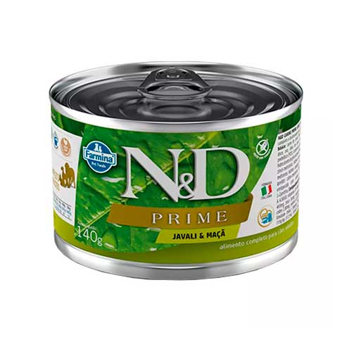 Carne de javali (mín. 45%), arenque, batata doce, ovo, óleo de peixe, maçã (mín. 2%), aditivo prebiótico (FOS), cloreto de colina, sulfato de condroitina, hidrocloreto de glicosamina, Vitaminas (A, D3, E), quelato zinco-metionina hidroxi analoga, quelato manganês-metionina hidroxi analoga, ferro aminoacido quelato, quelato cobre-metionina hidroxi analoga, levedura enriquecida com selênio, DL-metionina, taurina, L-Carnitina.
