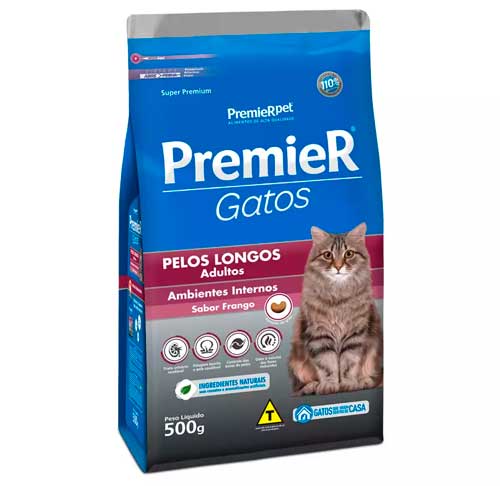 [Produtos] - Ração Premier Ambientes Internos Pelos Longos para Gatos Adultos Sabor Frango 1,5kg
