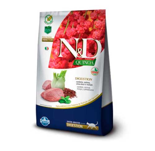 Ração Farmina N&D Quinoa Digestion Cordeiro para Gatos Adultos foi criada especificamente para auxiliar na digestão dos nossos amiguinhos felinos. Todos os seu ingredientes foram separados e testados para proporcionar qualidade de vida e bem estar após as refeições.