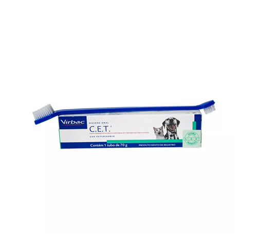 Deposite uma pequena quantidade da pasta C.E.T® Pasta Enzimática sobre a dedeira ou sobre a escova e, após molhá-la com água morna, incentive o animal a experimentá-la.