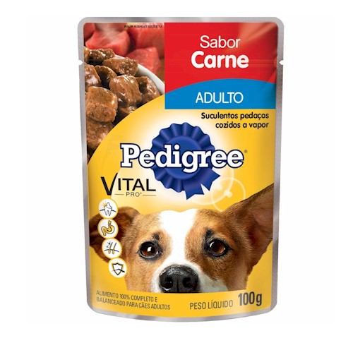 A Ração Pedigree Sachê Carne ao Molho para Cães Adultos é feita com deliciosos pedaços de carne cozidos a vapor que proporcionam aos cães todo o sabor que eles adoram. É uma refeição completa e balanceada para ser servida todos os dias. Também possui um balanço ideal de fibras, que proporciona fezes mais firmes e fáceis de limpar.