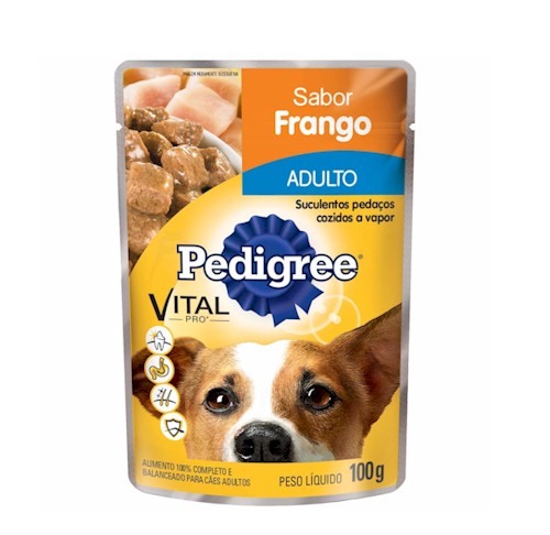 A Ração Pedigree Sachê Frango ao Molho para Cães Adultos é feita com deliciosos pedaços de carne cozidos a vapor que proporcionam aos cães todo o sabor que eles adoram. É uma refeição completa e balanceada para ser servida todos os dias. Também possui um balanço ideal de fibras, que proporciona fezes mais firmes e fáceis de limpar.