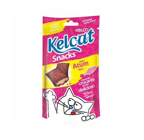 Petisco Snack para Gato Atum tem uma casquinha crocante com um delicioso e macio recheio de atum. Deliciosos por dentro e por fora os snacks Kelcat são crocantes e saborosos e possuem delicioso sabor