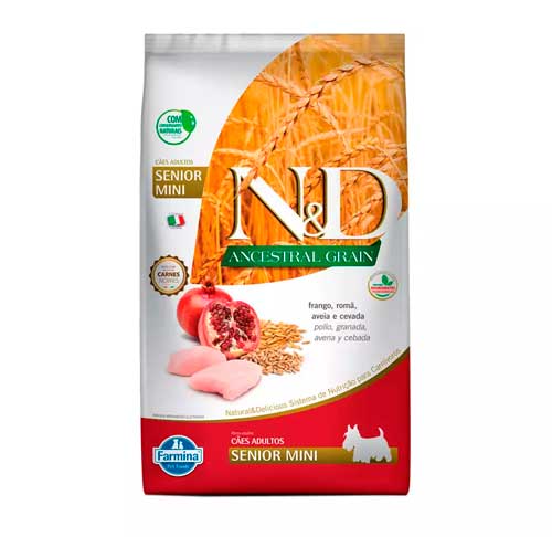 [Produtos] - Ração Farmina N&D Ancestral Grain para Cães Sênior de porte Mini sabor Frango e Romã 2,5kg