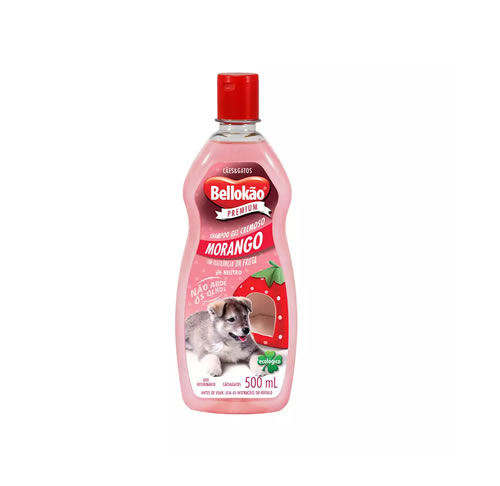 • Uso: Molhe totalmente o pelo do animal e aplique o Shampoo Morango Bellokão em quantidade suficiente para fazer espuma. Massageie bem. Deixe agir por 5 minutos e enxague. Se necessário repita a aplicação e enxague cuidadosamente.