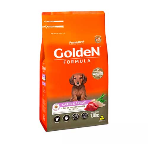 Ração Golden Fórmula Mini Bits Para Cães Filhotes Raças Pequenas Sabor Carne e Arroz 1kg