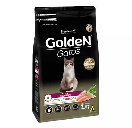 [Produtos] - Ração Golden para Gatos Sênior Castrados sabor Frango 3kg