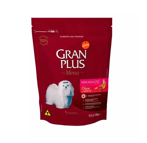 Ração GranPlus Menu para Cães Adultos de Porte Mini Sabor Carne e Arroz 3kg