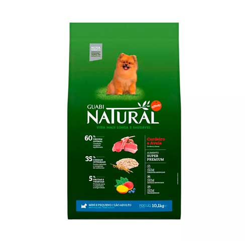 Ração Guabi Natural para Cães Adultos de Raças Pequenas sabor Cordeiro & Aveia 10,1kg