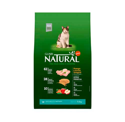 [Produtos] - Ração Guabi Natural para Gatos Castrados sabor Frango & Arroz Integral 7,5kg