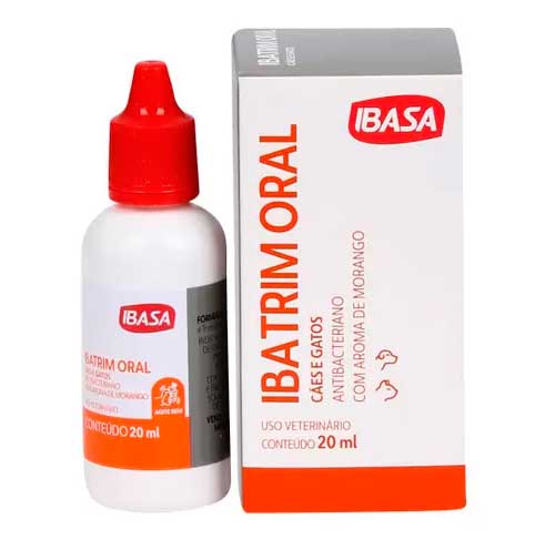Ibatrim Oral Cães e Gatos 20ml age no tratamento de processos infecciosos de cães e gatos causados pelos seguintes micro-organismos: Salmoneloses (Salmonella spp), toxoplasmose (Toxoplasma gondíí), vaginites (Escherichia coli, Brucella canis), metrite aguda (Escherichia coli), mastite (Staphylococcus spp, Streptococcus spp), traqueobronquite infecciosa dos cães (Bordetella bronchiseptica), pneumonia (Streptococcus spp, Pasteurella spp), cistite (Corynebacterium spp).