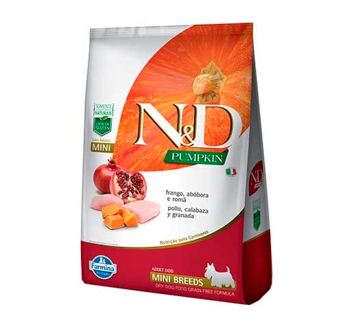 Ração N&D Pumpkin para Cães Adultos Raças Mini sabor Frango, Abóbora e Romã 800g