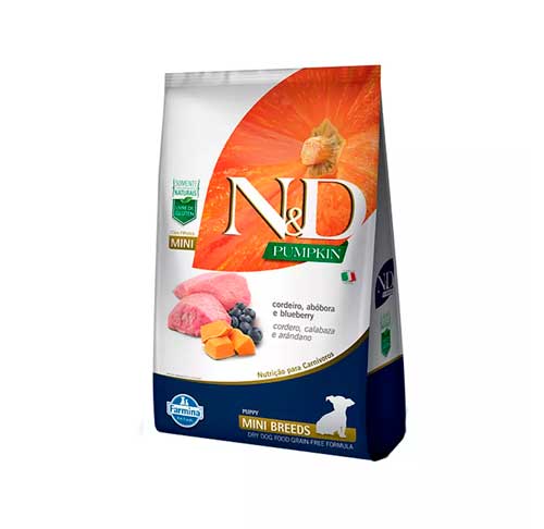 Ração N&D Pumpkin para Cães Filhotes Raças Mini sabor Cordeiro, Abóbora e Blueberry 2,5kg