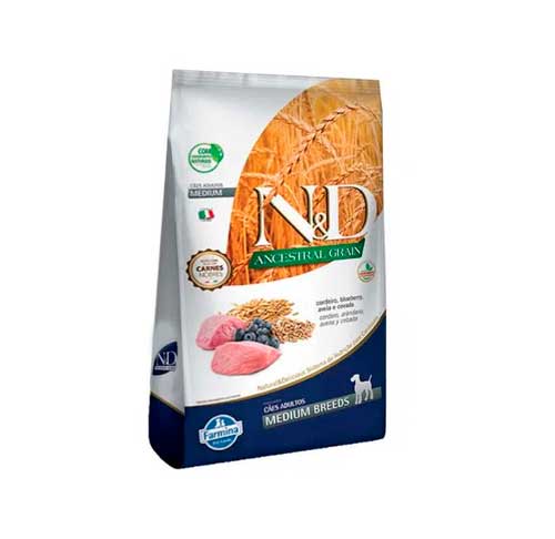 [Produtos] - Ração N&D Ancestral Grain Medium Para Cães Adultos Raças Médias Sabor Cordeiro e Blueberry 10,1kg