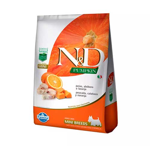 [Produtos] - Ração N&D Pumpkin para Cães Adultos Raças Mini sabor Peixe, Abóbora e Laranja 2,5kg