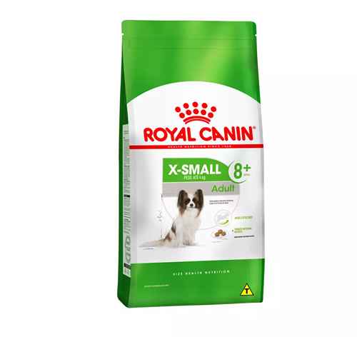 Ração Royal Canin X-Small Adulto 8+, é um alimento completo para cães adultos de porte miniatura, com até 4 kg quando adulto, com mais de 8 anos de idade.Contém nutrientes que ajudam a manter a vitalidade nos cães de raças muito pequenas frente os primeiros sinais de envelhecimento. Contém um complexo patenteado de antioxidantes.