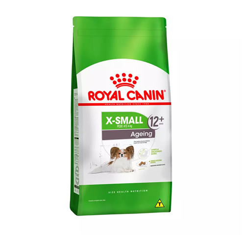Ração Royal Canin X-Small Ageing 12+, é um alimento completo para cães idosos de porte miniatura, com até 4 kg quando adulto, acima de 12 anos de idade. Auxilia em um envelhecimento saudável pois contém um complexo patenteado de antioxidantes e uma seleção de nutrientes. O teor de fósforo é adaptado, pois a função renal pode diminuir com o avanço da idade.