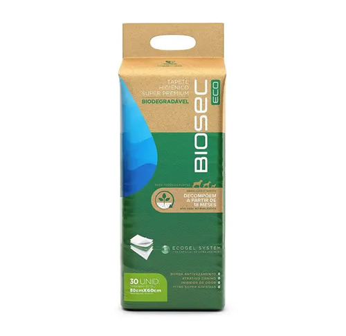 Tapete Higiênico Biodegrável Biosec Eco 80x60cm Com 30 Unidades