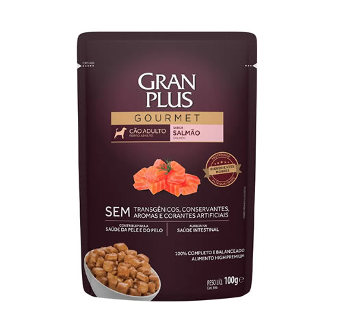 [Produtos] - Ração Úmida GranPlus Gourmet Sachê para Cães Adultos Sabor Salmão - 100g