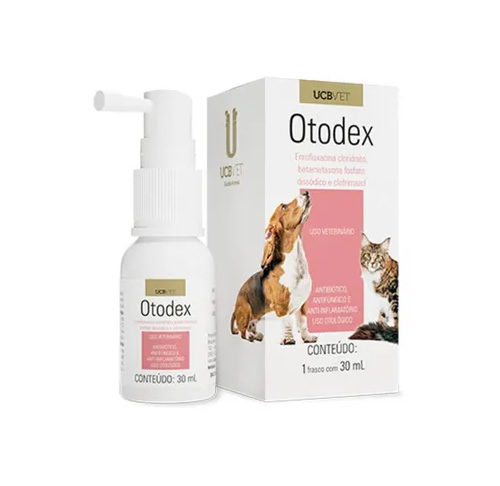Otodex é um medicamento de uso otológico que reúne em sua formulação a enrofloxacina e o Clotrimazol, dois princípios ativos de amplo espectro de ação no combate de otites causadas por bactérias e fungos. A betametasona é um potente anti-inflamatório de ação local que proporciona maior conforto ao animal pela diminuição da dor provocada pela inflamação.