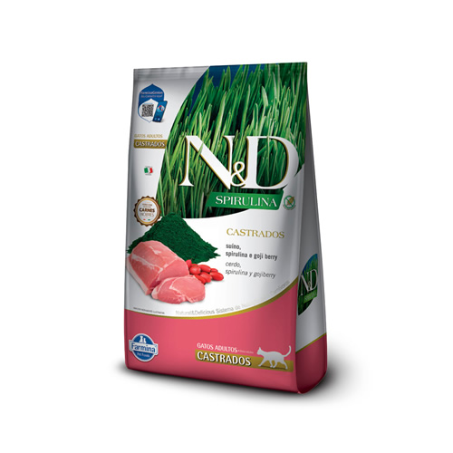 Ração Farmina N&D Spirulina para Gatos Adultos Castrados Sabor Suíno, Spirulina e Goji Berry