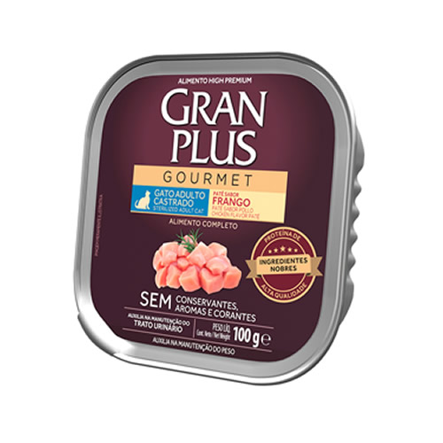 Ração Úmida GranPlus Gourmet Patê Sabor Frango para Gatos Castrados 100 g